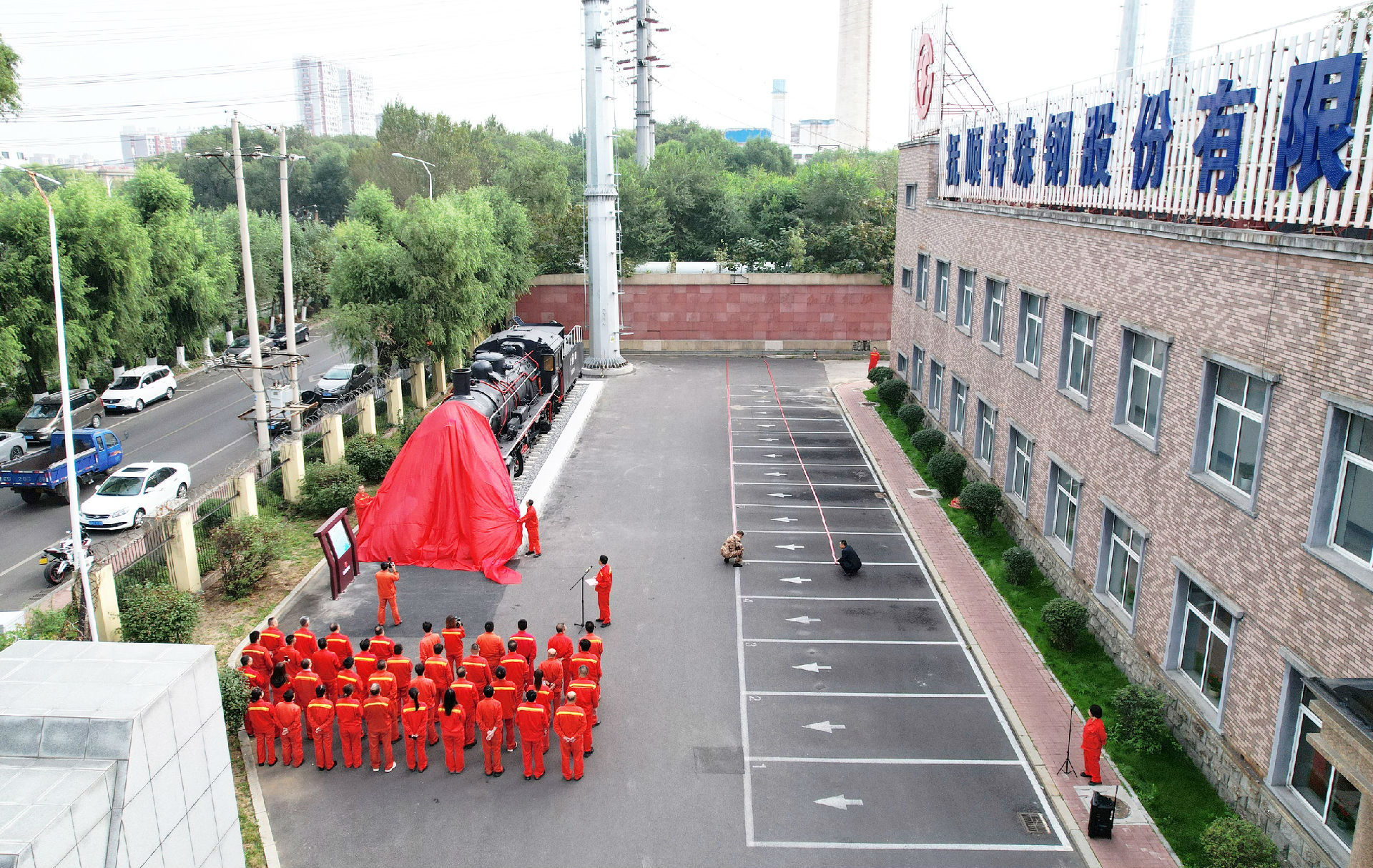 9月29日上午9時08分,撫順特鋼在辦公樓北側(cè)隆重舉行蒸汽機車文創(chuàng)項目落成揭幕儀式。撫順特鋼第一副總經(jīng)理穆立峰,常務(wù)副總經(jīng)理、黨委副書記、紀(jì)委書記、工會主席祁勇以及各單位員工代表50余人參加揭幕儀式。公司工會副主席、組織人事處處長朱志勇主持揭幕儀式。